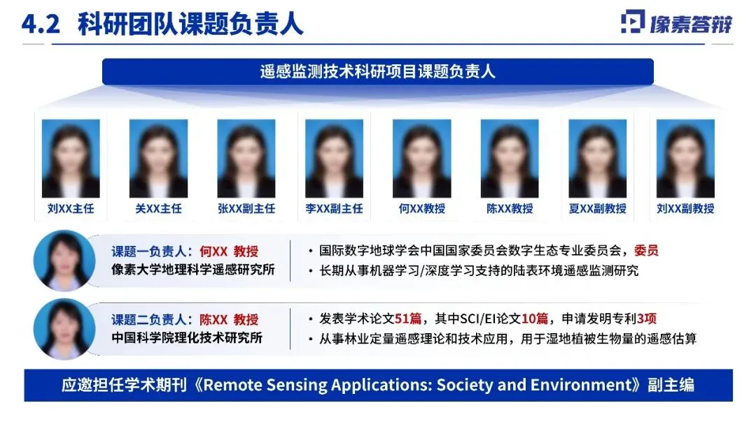 三、团队构成合理,支撑有力项目汇聚了来自顶尖科研院所与专业高校的团队,负责人学术背景深厚,团队成员覆盖遥感反演、生态模型、数据分析等多个方向,形成了从机理研究、技术研发到应用验证的完整链条,为项目顺利实施提供了可靠保障。