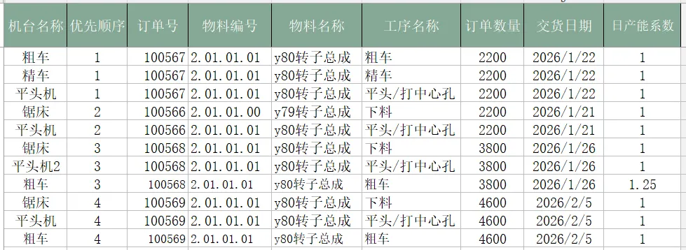 1. 订单集中管理在“订单”表里,统一录入所有订单的机台、工序、数量、交货日期。
