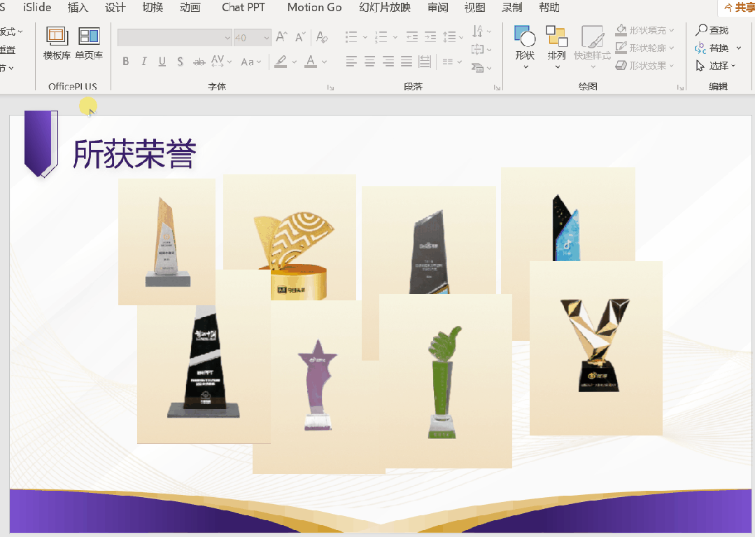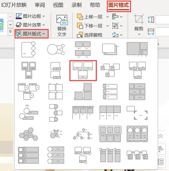 【SmartArt】功能不仅能快速排版文本,还能快速排版图片!一页 PPT 上有多张图片,例如展示团队成员、所获荣誉等,你还在逐张对齐吗?只需全选图片,点击【图片格式】-【图片版式】,就能看到众多排版样式,点击即可实现一键排版。