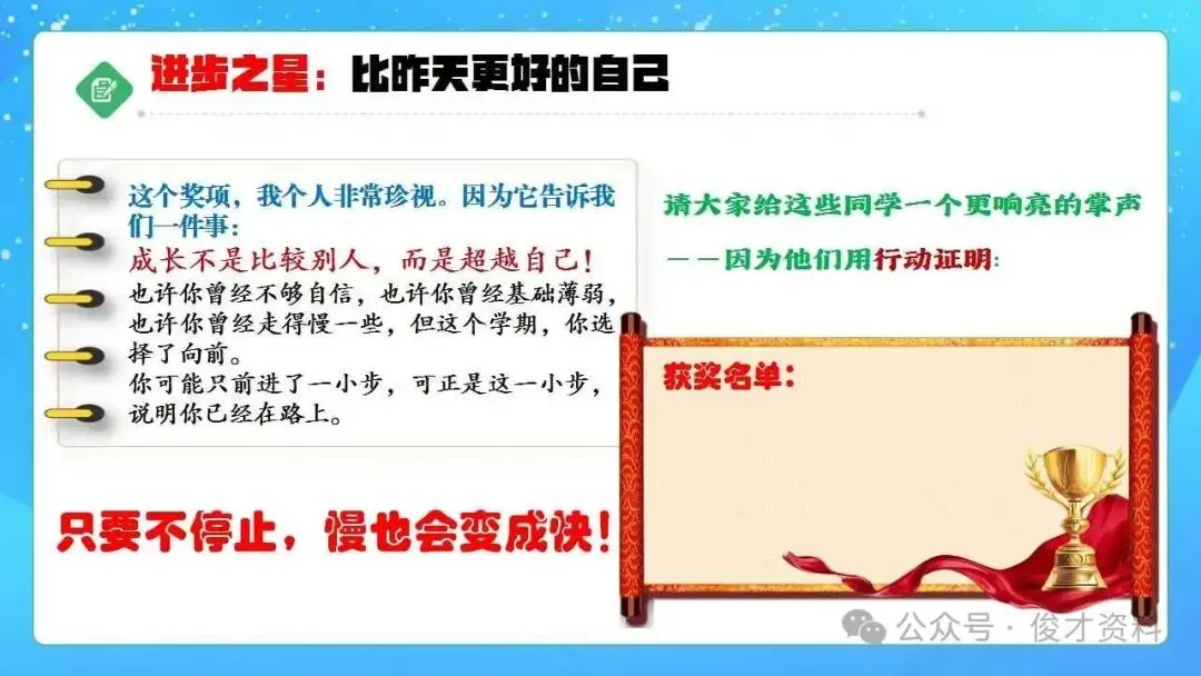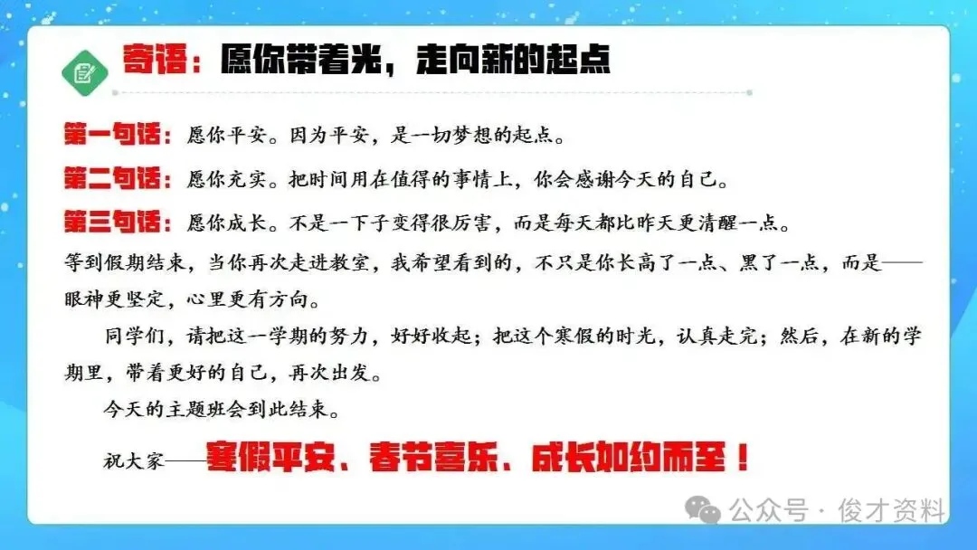 期末寒假表彰班会ppt:把一段时光好好收起,在成长中出发.含开场视频