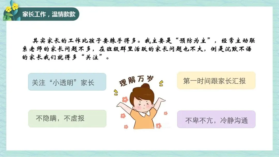 班主任工作经验分享与交流ppt:爱在寻常处,勤于细微中。