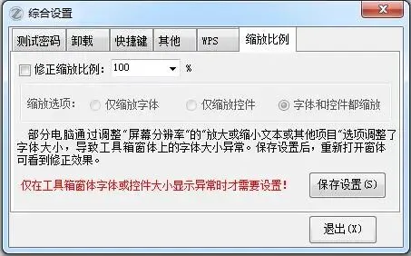 综合设置:自动测试文档保护密码、卸载工具、自定义快捷键及缩放比例设置。