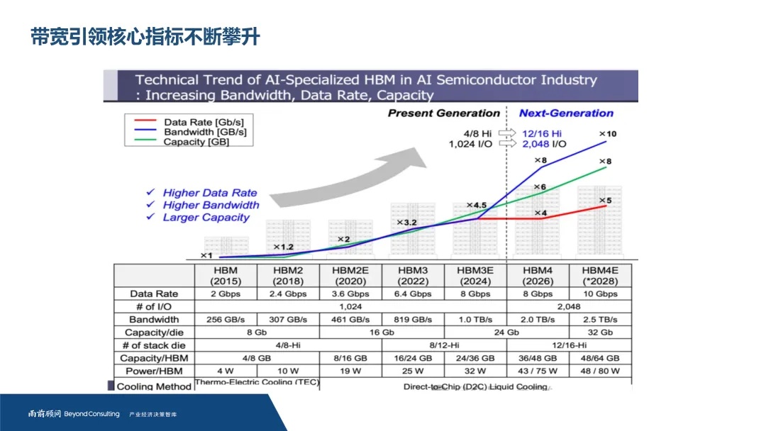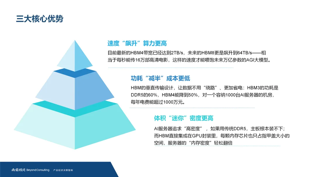 随着人工智能与高性能计算对数据吞吐量的需求爆发式增长,存储技术正迎来关键跃迁。以3D堆叠为核心的高带宽存储器(HBM),通过TSV硅通孔等先进工艺实现远超传统内存的带宽与能效,已成为突破“内存墙”瓶颈、驱动算力持续提升的核心使能技术。尤其在AI训练与推理场景中,HBM已是高端GPU的标配,其性能直接决定了计算系统的整体效率。