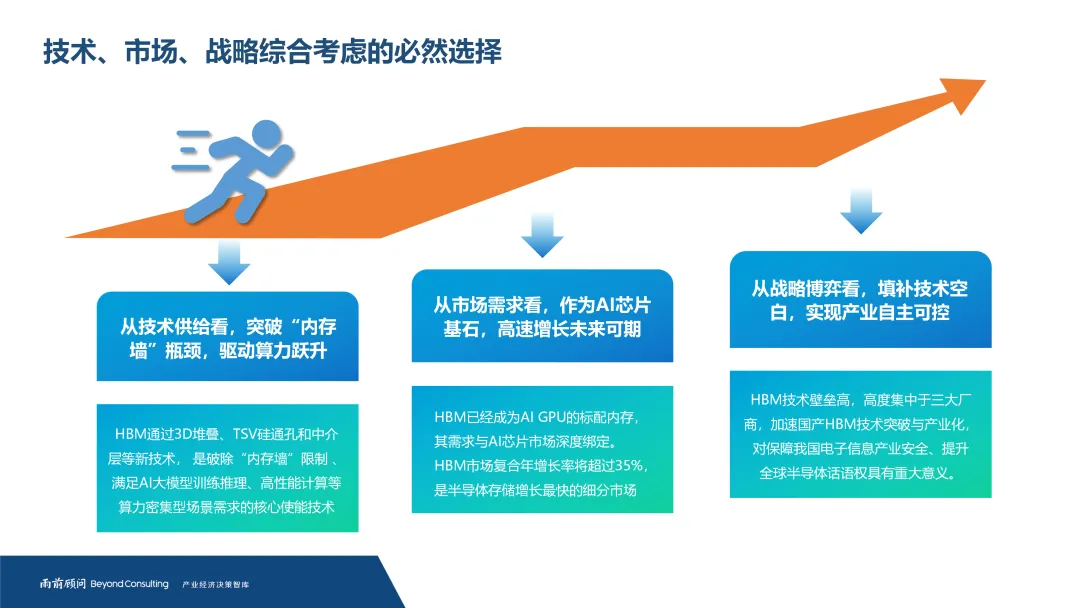 在这一背景下,推进HBM的国产化突破与自主可控已不仅关乎商业竞争,更成为保障我国算力基础设施安全、提升全球半导体话语权的关键战略任务。面对技术、工艺与生态的高壁垒,加快产业链上下游协同攻关、构建从材料、设计到先进封装的全环节能力,是我国在下一代存储竞争中实现突围的必由之路。
