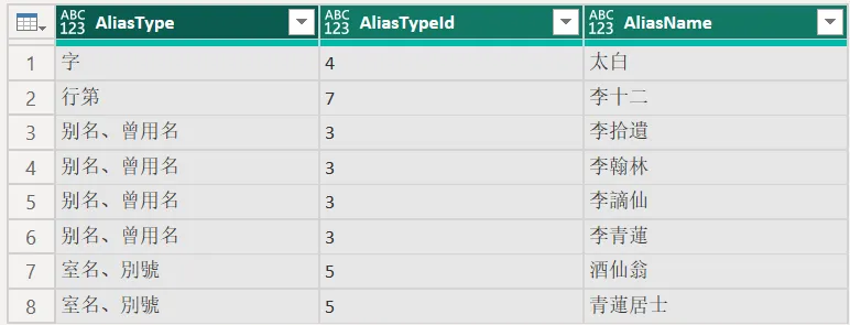 如下获得了李白的别名资料: