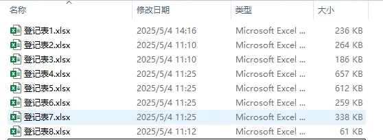 这些 Excel 文档中的内容都是相同的模板,只是内容不相同