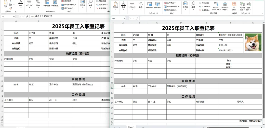 - 提取整个单元格的内容,比如姓名、民族、政治面貌、性别、婚姻状况、最高学历、身份证号、户籍地、毕业学校、联系电话、照片这些信息,这种情况可以用「模板中提取」也可以用「自定义规则提取」的方式进行提取。
