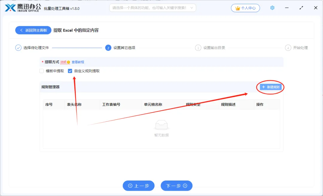 因此我们先勾选「自定义规则提取」,然后新建规则。