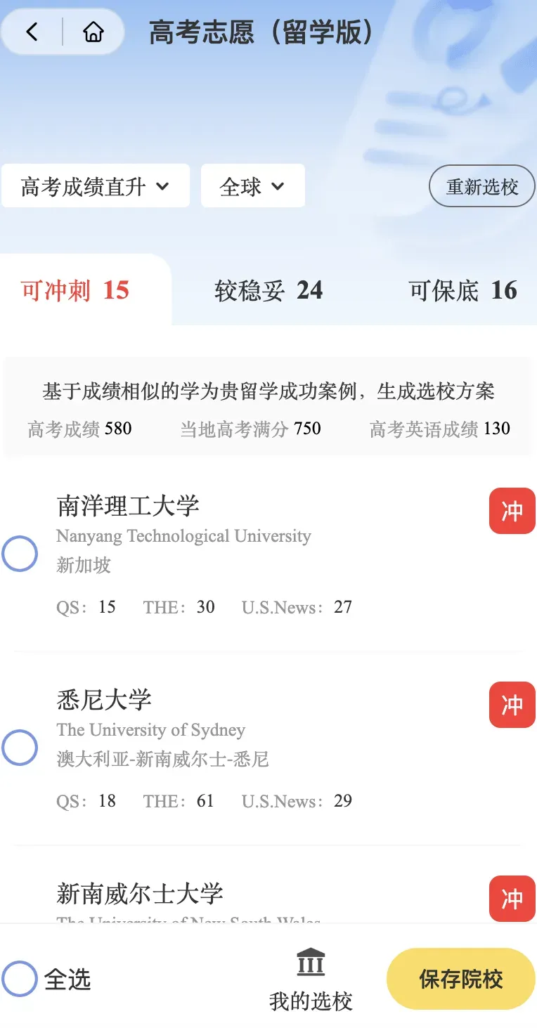 精准定位:根据预估成绩预测录取范围,择校定位精准!