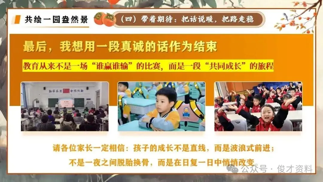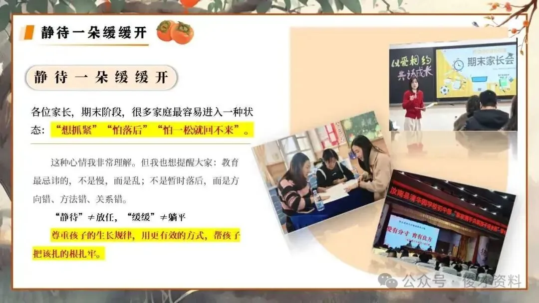 【小学】秋季上期末家长会ppt:教育孩子,本质上是教育自己.含发言稿