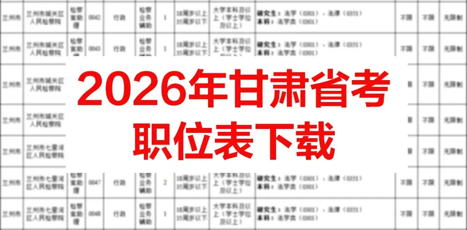 2026年甘肃省考职位表