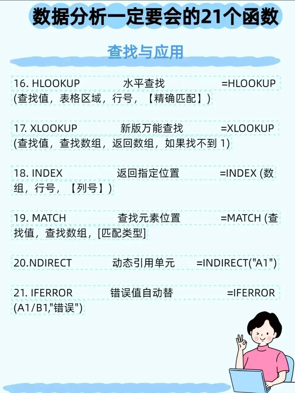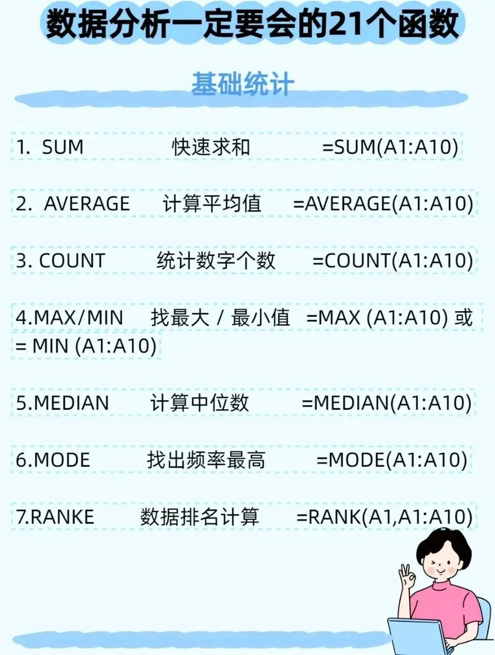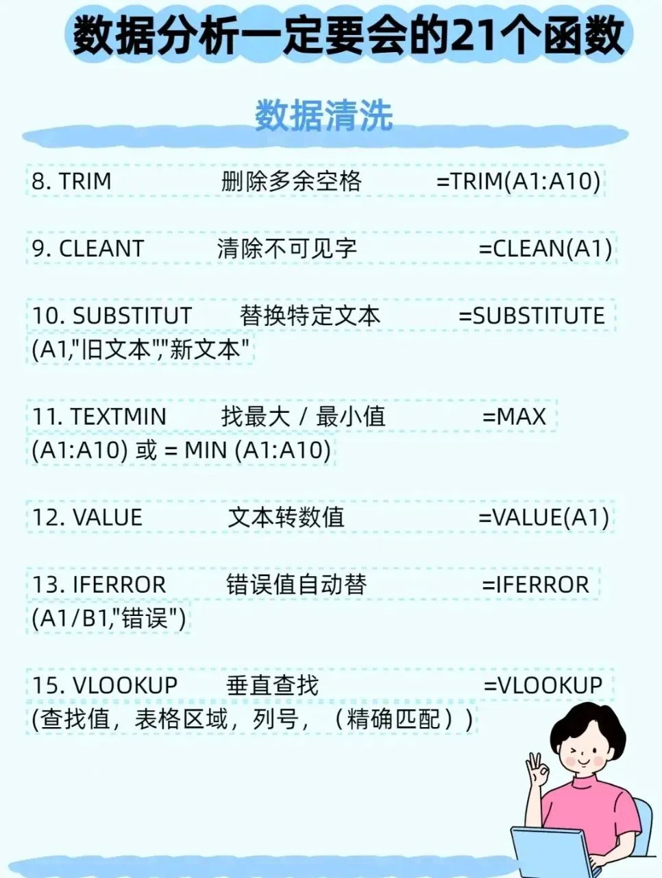 这21个刚需函数,覆盖基础统计、数据清洗、查找应用三大场景: