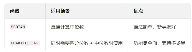 🛠️ 方法一:MEDIAN 函数
