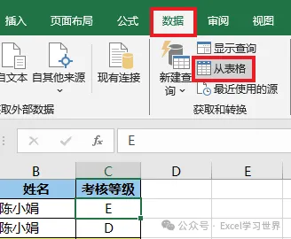 1. 选中数据表的任意单元格 --> 选择菜单栏的“数据”-->“从表格”