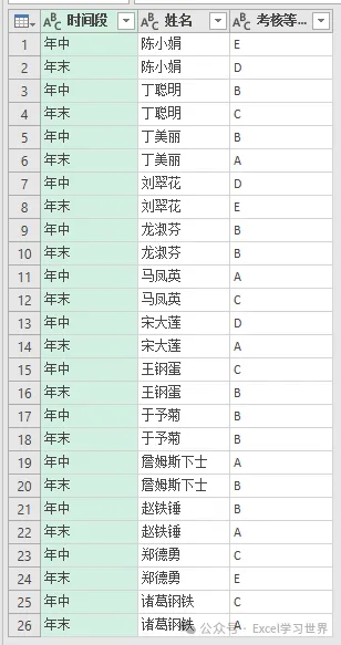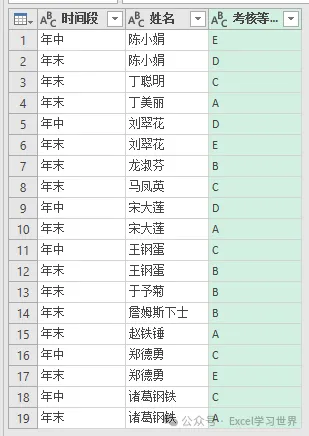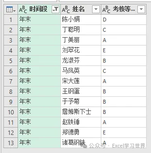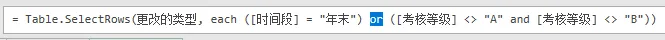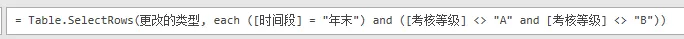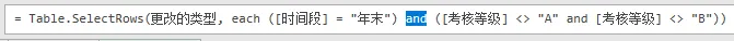 = Table.SelectRows(更改的类型, each ([时间段] = "年末") or ([考核等级] <> "A" and [考核等级] <> "B"))