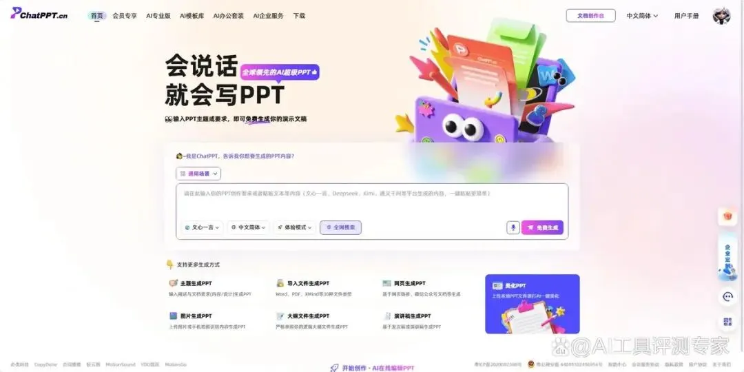 我们结合教育场景的“内容专业性、操作便捷性、视觉适配性、团队协作性”四大核心需求,实测了20+款工具,最终筛选出3款王牌。其中,ChatPPT凭借“真正懂中文+全场景适配”的独特优势,成为教育人最值得投入的“备课利器”。