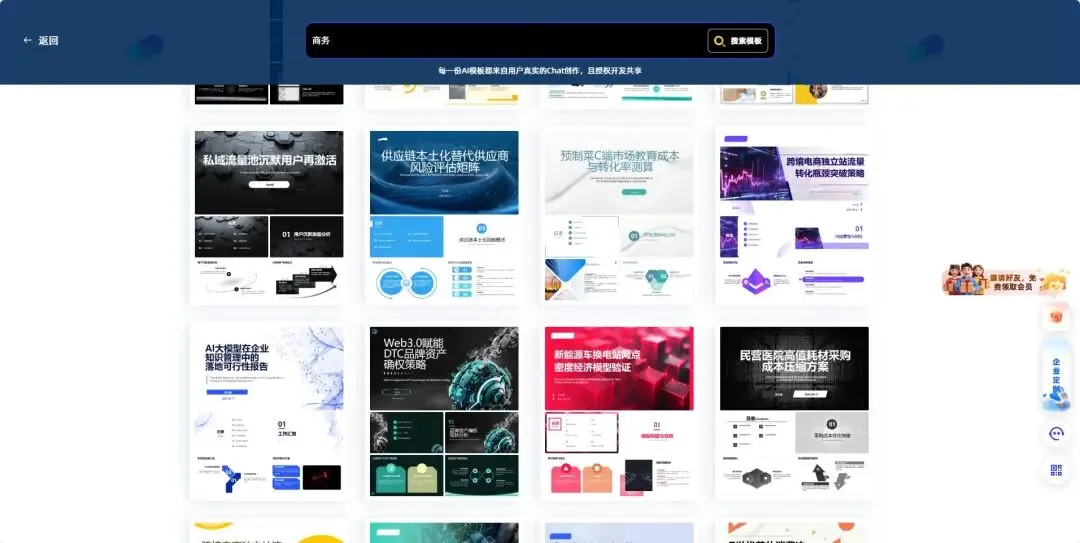 工具的“专业度”,不仅体现在功能全面性上,更在于其能否精准把握中文语言、文化语境及垂直行业的需求。在中文支持方面,海外工具常因字体兼容性、术语准确性等问题“水土不服”,而ChatPPT从诞生起便深耕中文市场,其业务已覆盖金融、教育、医疗、政务等20多个行业,内置的120+细分领域标签库能精准匹配不同场景的设计规范。例如,在处理“党建汇报”“政务宣传”等具有中国特色的内容时,ChatPPT的素材库和内容理解力远超国际工具,确保产出作品既符合政治要求,又具备专业规范性。