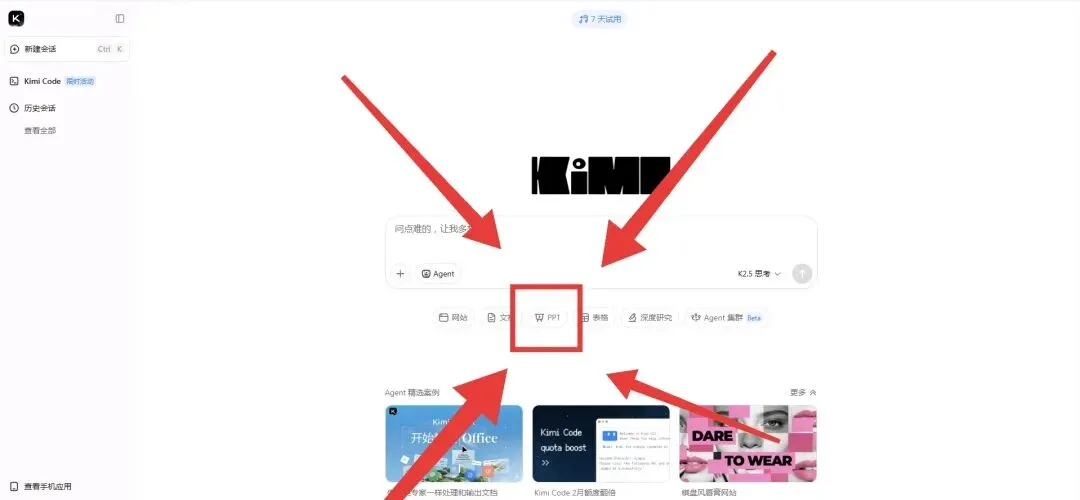 操作流程:进入平台,点击命令框下方PPT模式,输入指令:生成“XXX”PPT,即可自动生成PPT