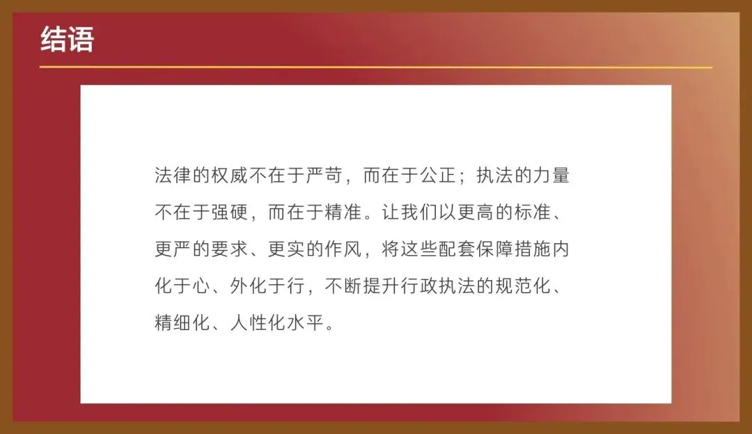 然而,在实践中,我们的一些执法行为仍存在重实体、轻程序,重处罚、轻教育,重结果、轻过程的现象。这不仅可能导致行政处罚决定在行政复议或行政诉讼中被撤销、变更,更会损害执法机关的形象,引发社会矛盾。因此,全面、准确、审慎地落实行政处罚过程中的各项配套保障措施,绝非可有可无的“软要求”,而是确保执法行为经得起法律、历史和人民检验的“硬约束”。本次授课,我们将围绕行政执法全过程记录、证据登记保存、责令改正以及免罚告知承诺等关键配套措施,结合法律法规与典型案例,进行深入剖析与讲解。