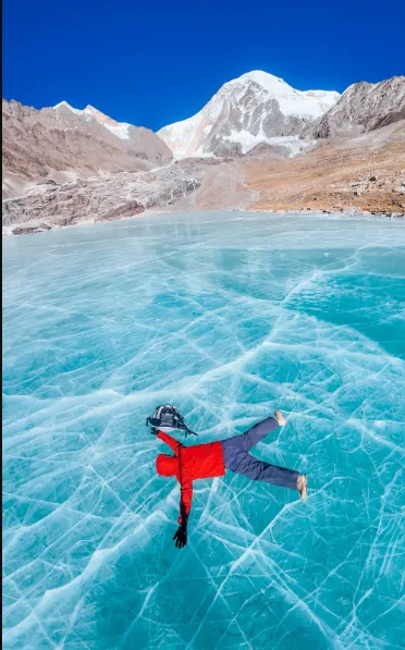 5200米的观景台,不是职场的“汇报台”。你不用站得笔直,不用堆着假笑,不用准备好“领导,我认为这个方案的核心亮点是……”,你可以随便瘫、随便坐、随便躺,甚至可以对着雪山骂一句“去他的KPI”!没人会指责你态度不好,没人会要求你“注意形象”,神山只会用一片幽蓝的冰湖,接住你所有的委屈和疲惫。