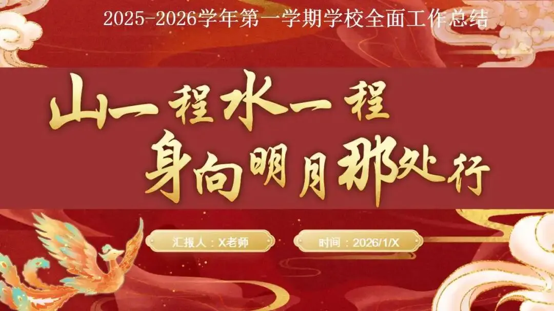 2025年秋季第一学期学校全面工作总结ppt:山一程,水一程,身向明月那处行。