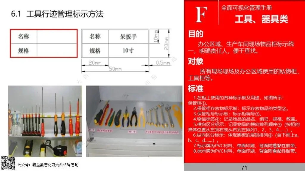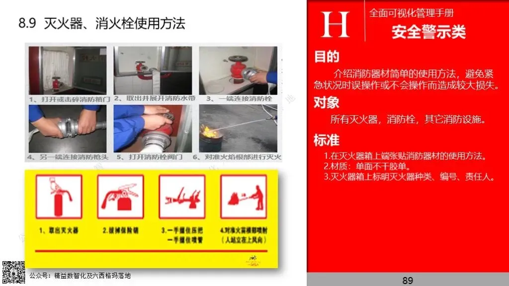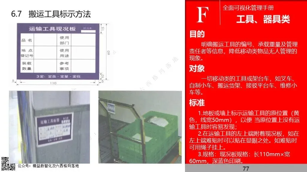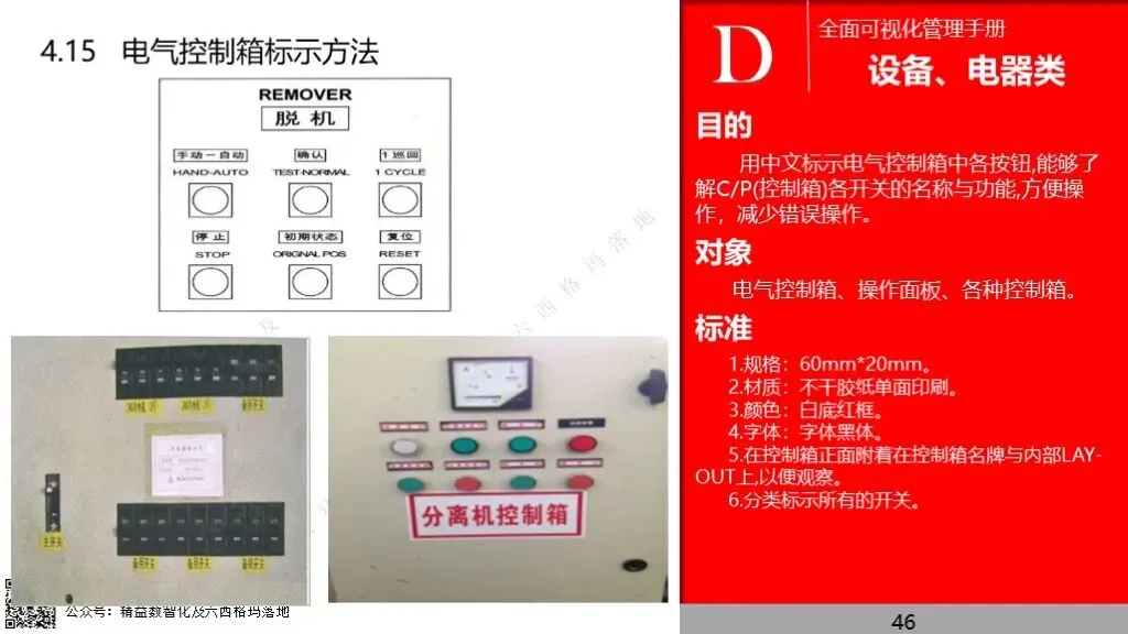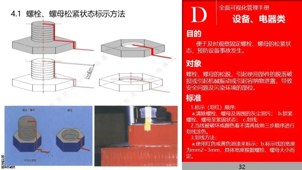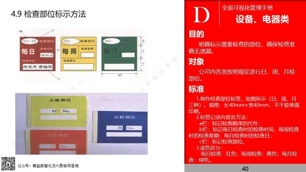 - 第5步:检查验收与问题整改(查落地、补漏洞),全面检查目视化落地效果,确保所有区域符合设计标准,无遗漏、无偏差,对未达标区域限期整改。