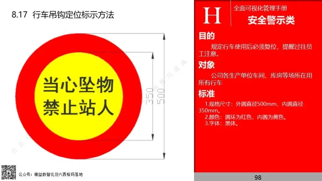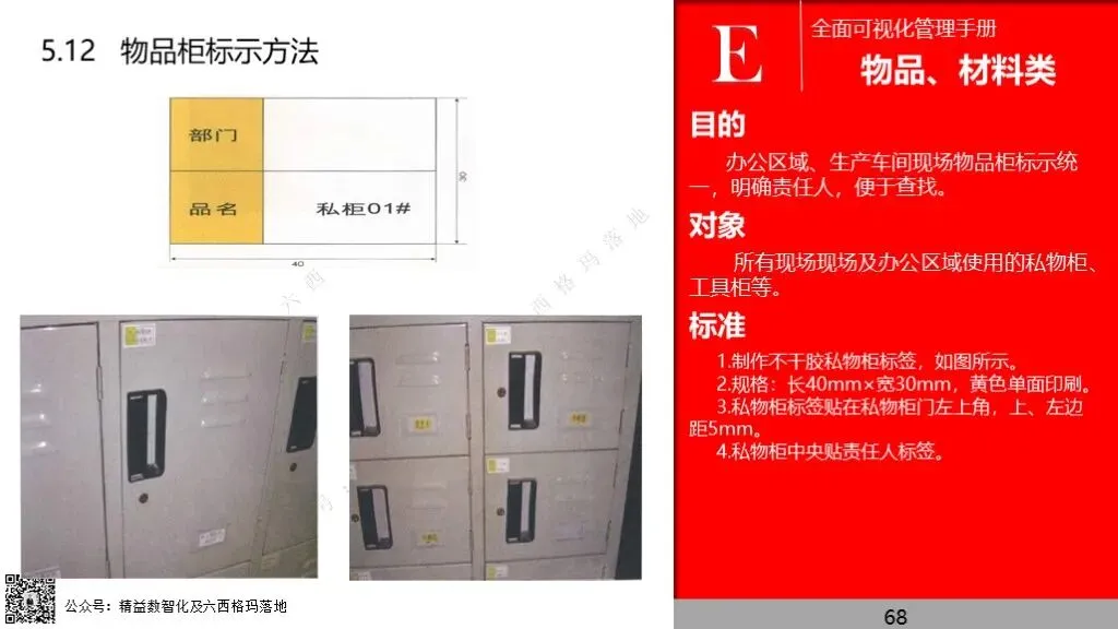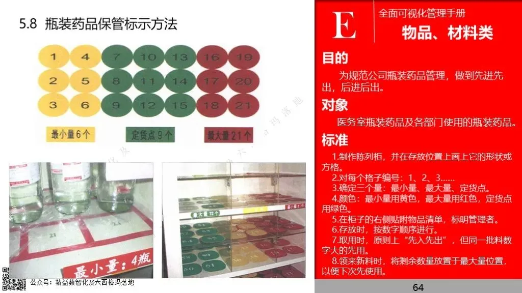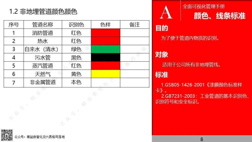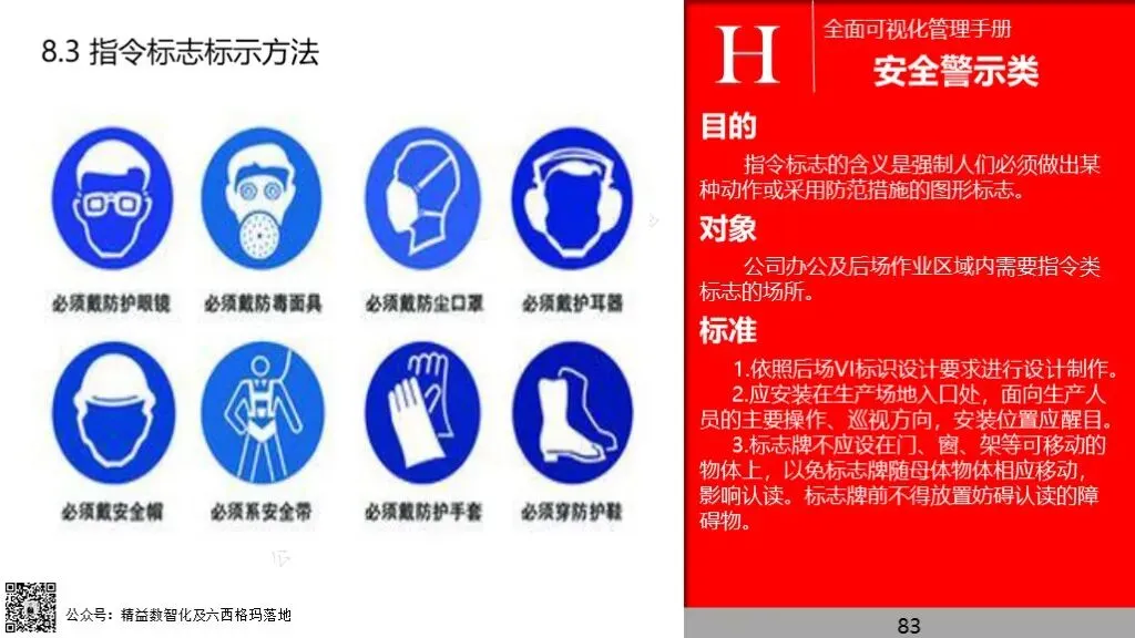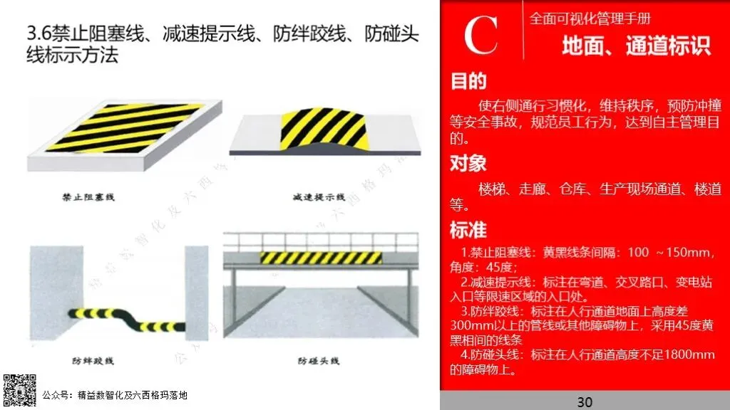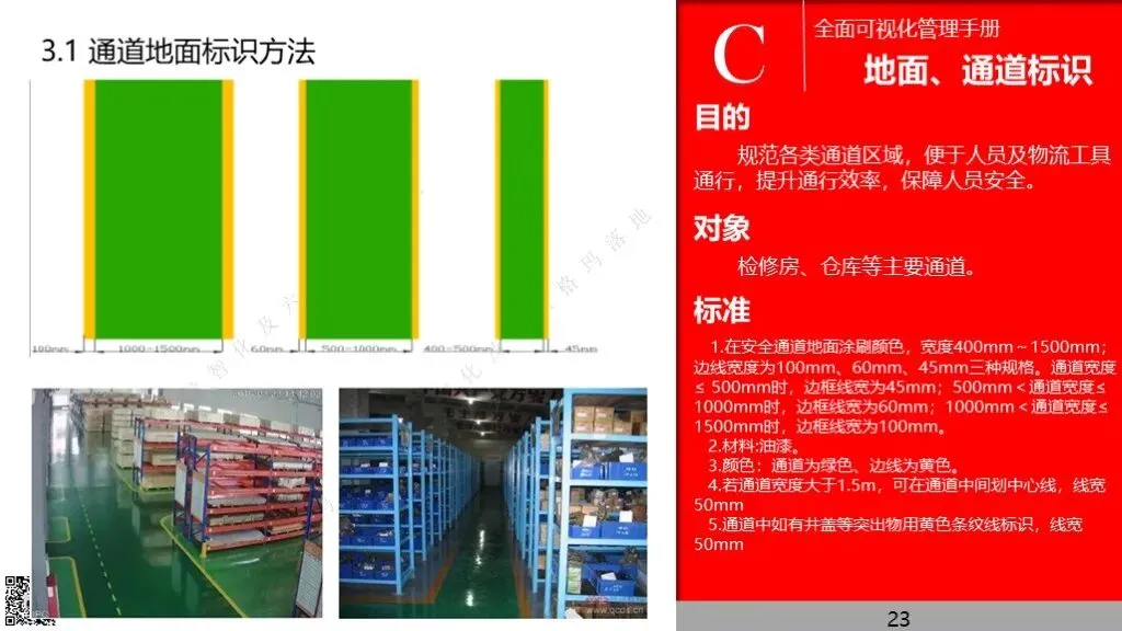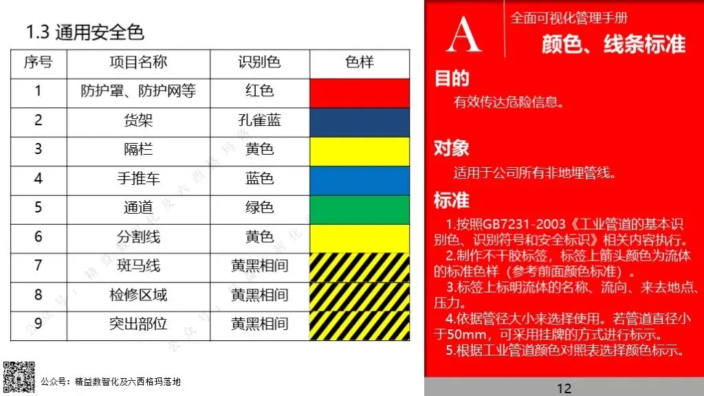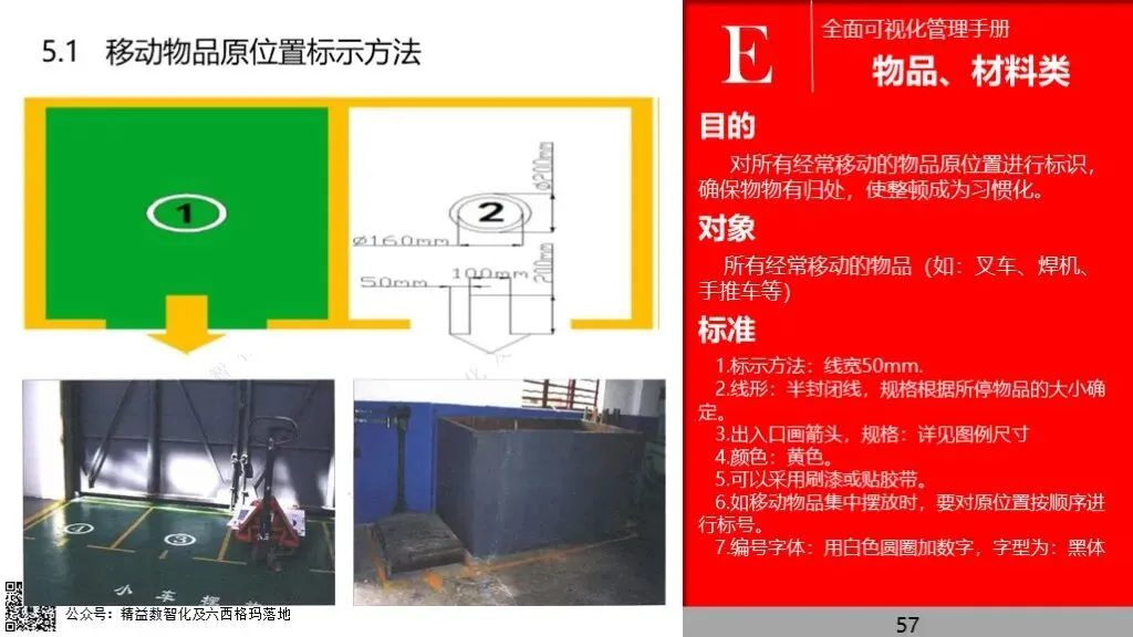 在精益生产与现场管理的体系中,目视化管理是打通信息传递壁垒、实现高效运营的核心抓手。它以直观的视觉信号为载体,将生产现场的状态、标准、问题与目标清晰呈现,让每一位员工无需复杂沟通就能快速掌握关键信息,从根本上消除信息不对称带来的效率损耗、操作失误与管理盲区,成为企业筑牢现场管理基础、推动全员参与改善的重要基石。分享目视化管理的实施路径,需要电子版学习资料的同学,关注点赞转发加老师微信领取第1步 现状调研与需求规划,了解现场现状,明确目视化管理的覆盖范围、解决的痛点问题,确保目视化贴合生产实际。1.1 组建小组,由生产 / 精益负责人牵头,联合班组长、工艺员、质量员、现场员工代表,明确目视化管理各角色职责1.2 现状调研,按生产区域、设备区域、物料区域、仓库区域、实验室、厂区等,了解现状,记录问题点并拍照留存1.3 明确需求与目标,结合调研结果,确定目视化核心目标,确定优先实施区域和实施范围1.4 需求输出,形成现场目视化现状问题清单及目视化实施范围与目标第2步:标准化设计(定规范和标准),制定统一的目视化设计标准,确保现场标识、看板、标线等风格统一、信息清晰、符合现场操作习惯,避免 “五花八门” 导致员工识别困难可更新:看板、标识支持便捷修改,避免一次性设计无法适配生产变化低成本:优先选用车间易获取、易制作的材质,控制实施成本。2.2 分模块标准化设计