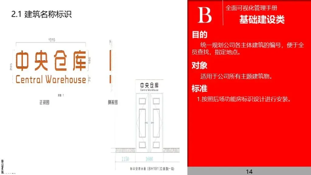 按第一步划定的区域,明确各模块目视化设计内容与标准