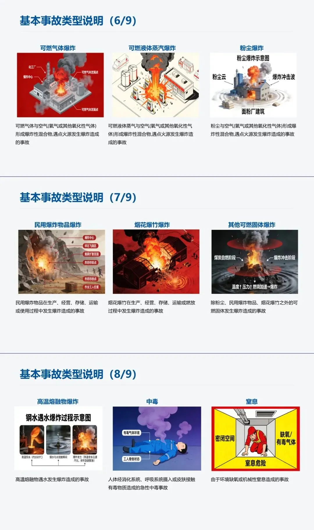 爆炸类细化至不同介质(气体、蒸气、粉尘、熔融金属等)。