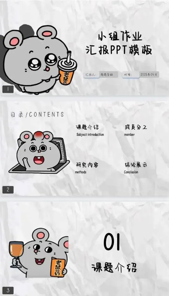 本文内容分享【美叽大鼠系列ppt模板】