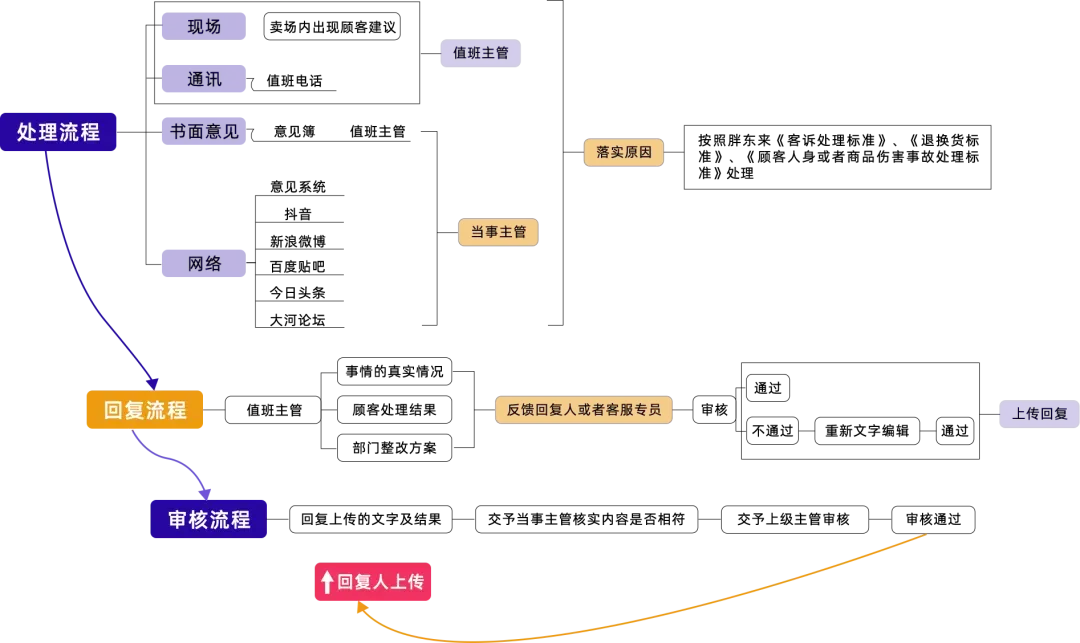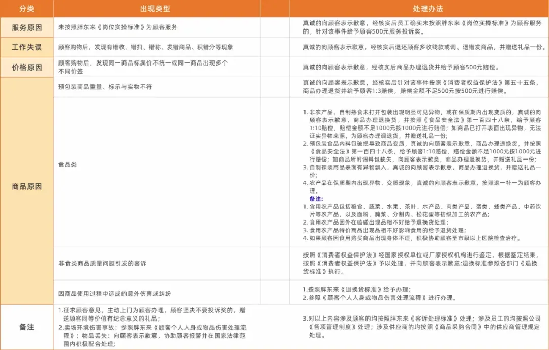 除客诉外,顾客还会提出一些其他的宝贵意见,胖东来对此也是十分的重视,并设置有专门的“客服处理流程”(见下图)。
