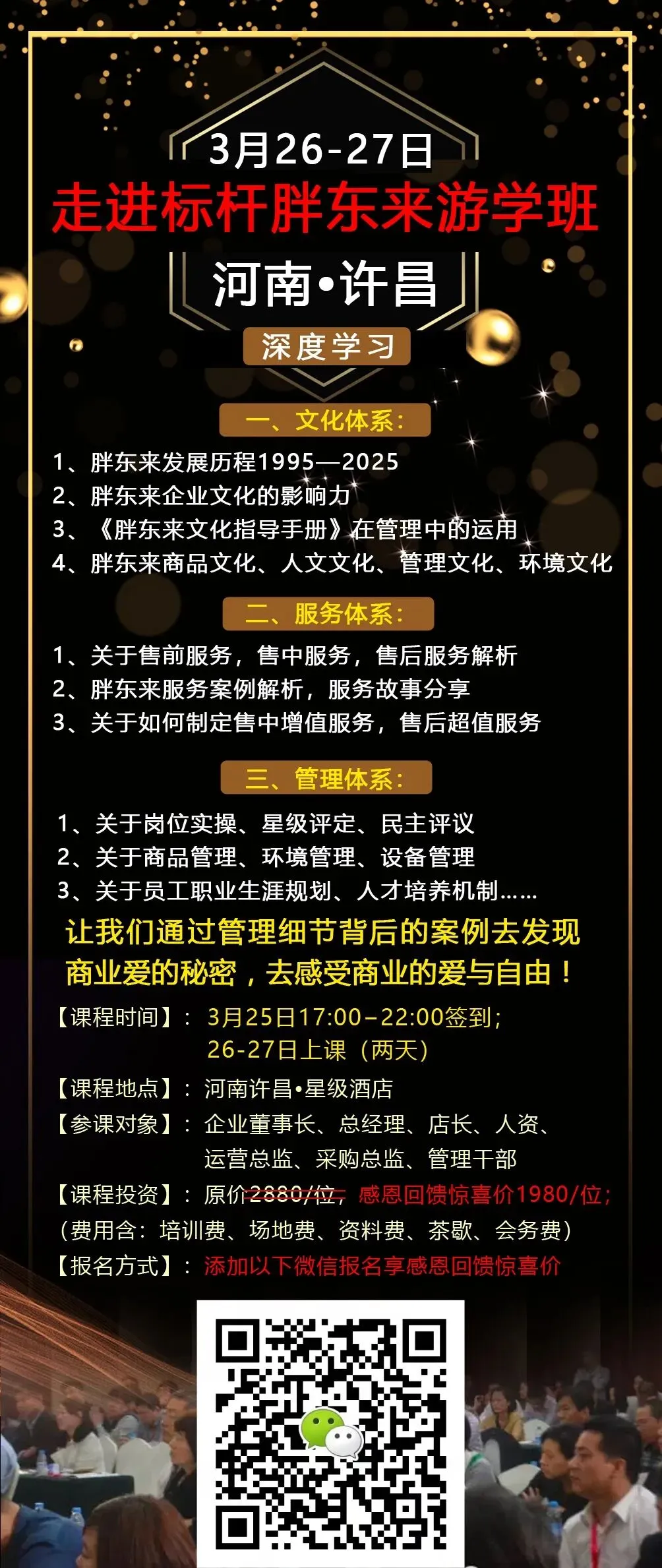 ⏰温馨提醒: 3月26-27日走进胖东来研学班火热报名中......