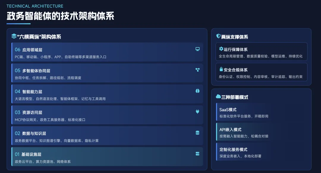 “请根据知识库的内容,生成一份智能体在数字政府建设中的研究报告 PPT。PPT 视觉设计:商务科技风格,主配色为蓝色,发光数据流线条,极简几何图形,干净背景,预留醒目标题区域,8K 分辨率,高对比度,企业级审美。”