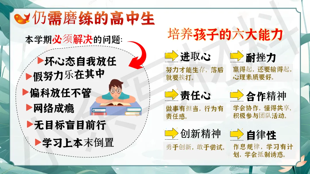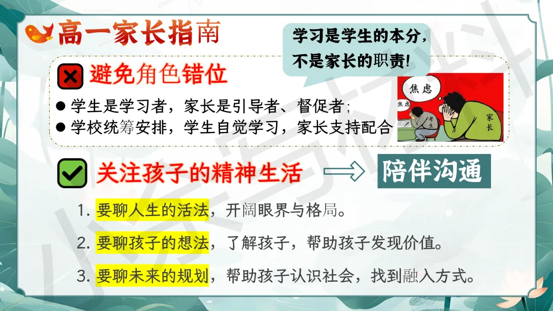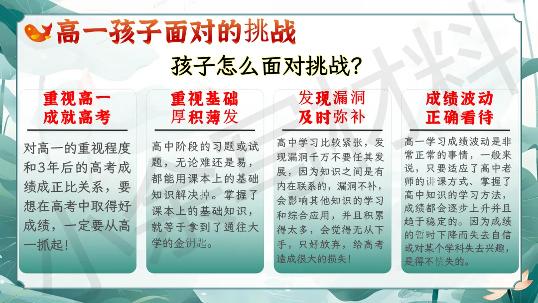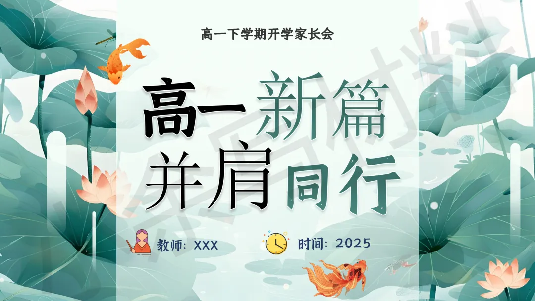 关于这份「高一春季下学期开学家长会 PPT 课件《高一新篇,并肩同行》模板推荐(附配套发言稿)」就介绍到这里了,希望本次分享的 PPT 课件对您有用哈。