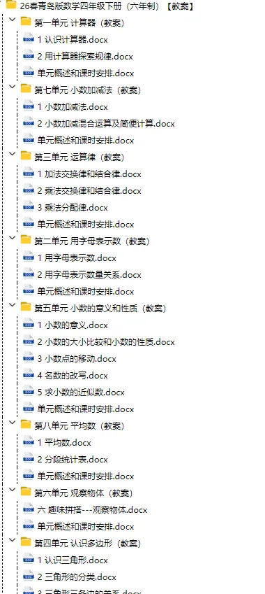 当前位置:首页>PPT>2026春数学四年级下册 教案+课件PPT(青岛版),可下载打印!