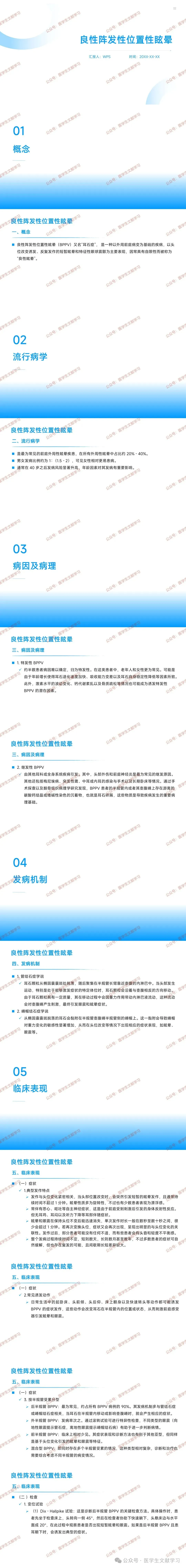 疾病特点:具有自限性,自然病程数天至数月,约 50% 患者 1 个月内自愈但易反复,耳石复位最有效。