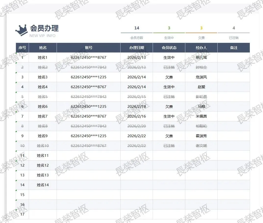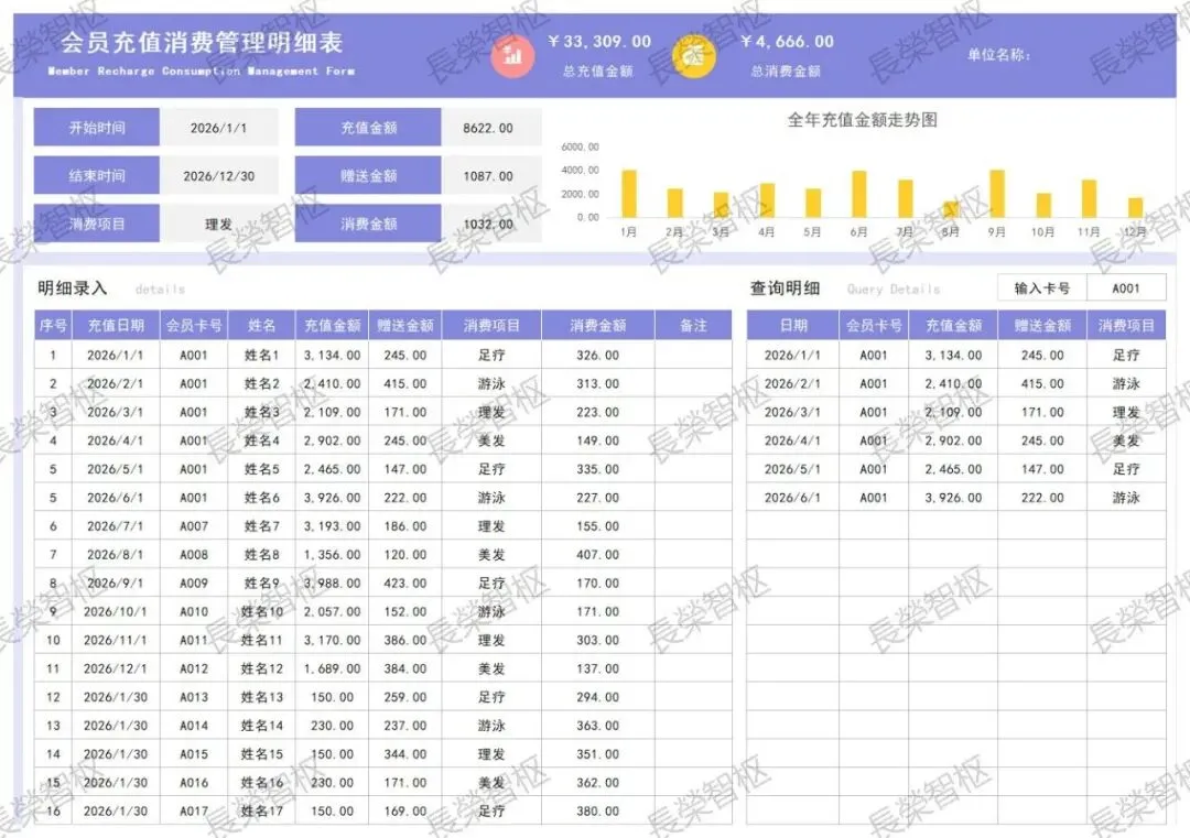 >【Excel模板】【链接可直接下载】门店美容院健身房客户会员管理系统销售跟进管理VIP会员充值消费管理明细表记录表CRM