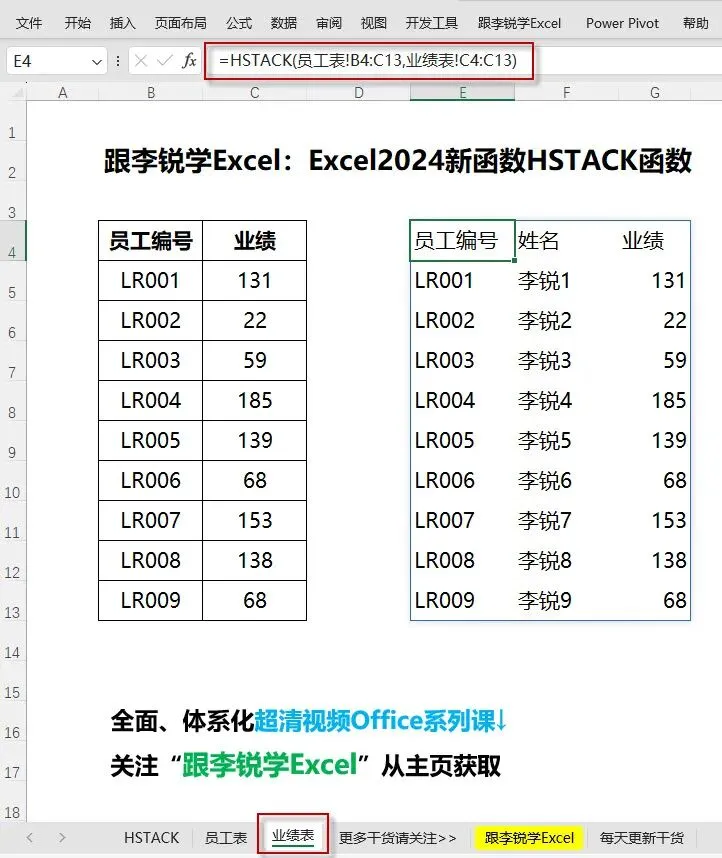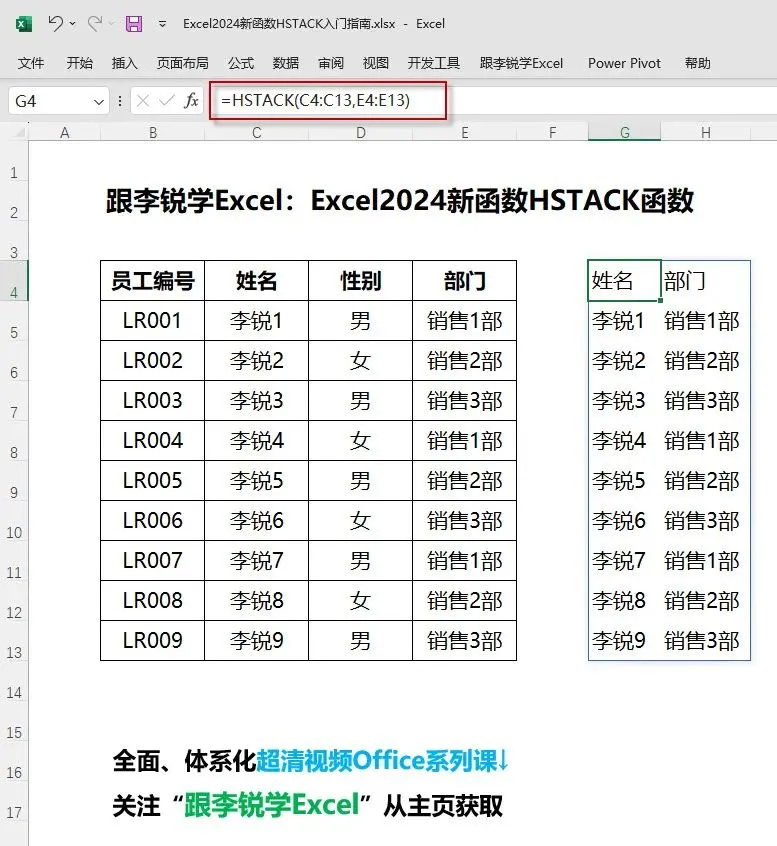 下面我采用动图演示+图文解析的讲解方式,5分钟教会你如何使用Excel 2024新函数HSTACK函数根据要求构建表格。