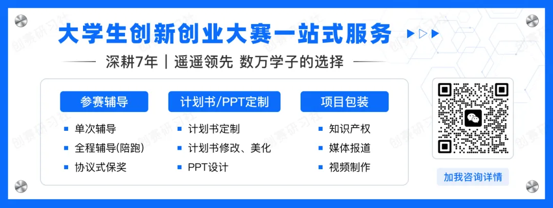 点击蓝色文字👉:想获奖?看下创赛指南可以给你提供那些服务吧!真正的一站式创赛服务