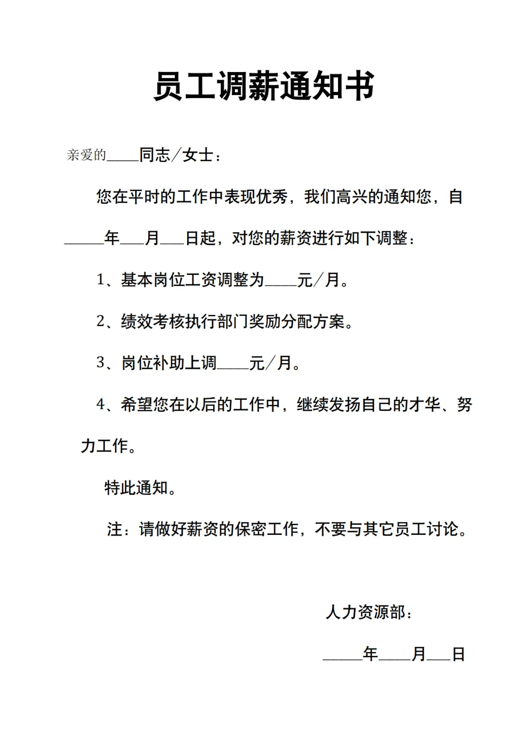 3款调薪通知书模板,WORD文档电子版,可免费下载打印