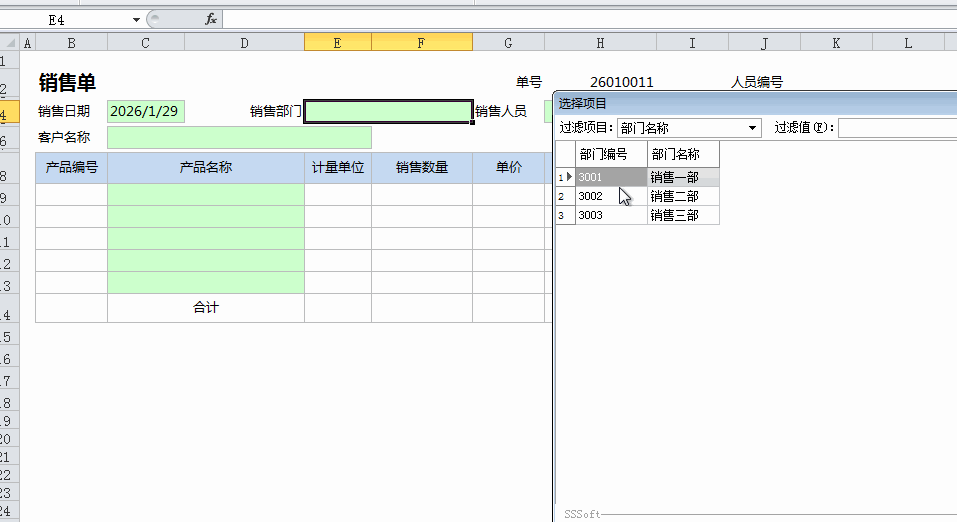 我们只录入“销售人员”,然后自动提取其所属的销售部门。