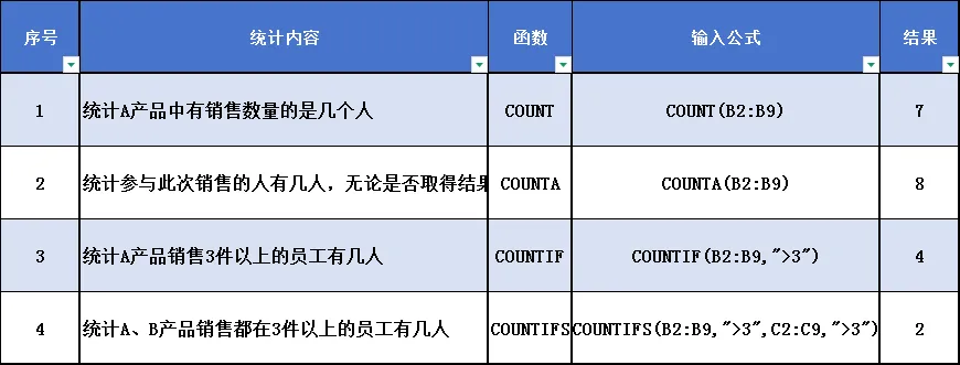 EXCEL 宝藏函数-COUNT、COUNTA、COUNTIF、COUNTIFS