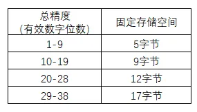 还要说明一下,这儿的20字节是总位数,包含小数位数,但小数点和正负号都不算。