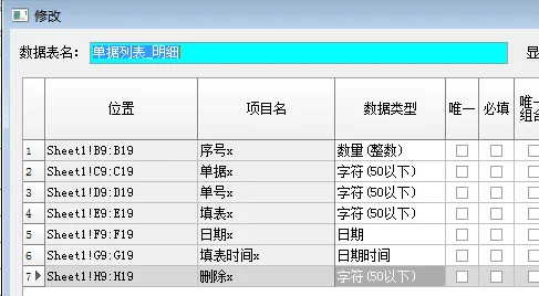 我们在建数据项目后,需要设置每个数据项目的数据类型(数字、字符、日期)。