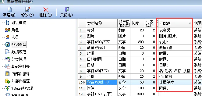 其实就是依据的匹配词,在设定数据项目时,系统会自动把要定义为项目名的单元格内容与匹配词对应,如果能对应上,就会使用这个数据类型 ,当然,这个对应是模糊对应,所以有时也会出现数据类型不正确的情况,这时,就要我们手动修改。