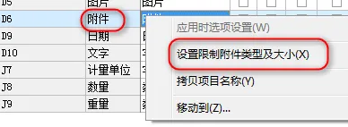 我们在使用时,都会在右键菜单上有一个设置文件类型及大小的选择,图片我们可以设置成 jpg、png、bmp之类, 附件可以根据实际需要设置,可以是rar、zip, 也可以是docx、ppt之类,文件大小是限制上传文件的大小,防止上传过大的文件,影响系统运行。