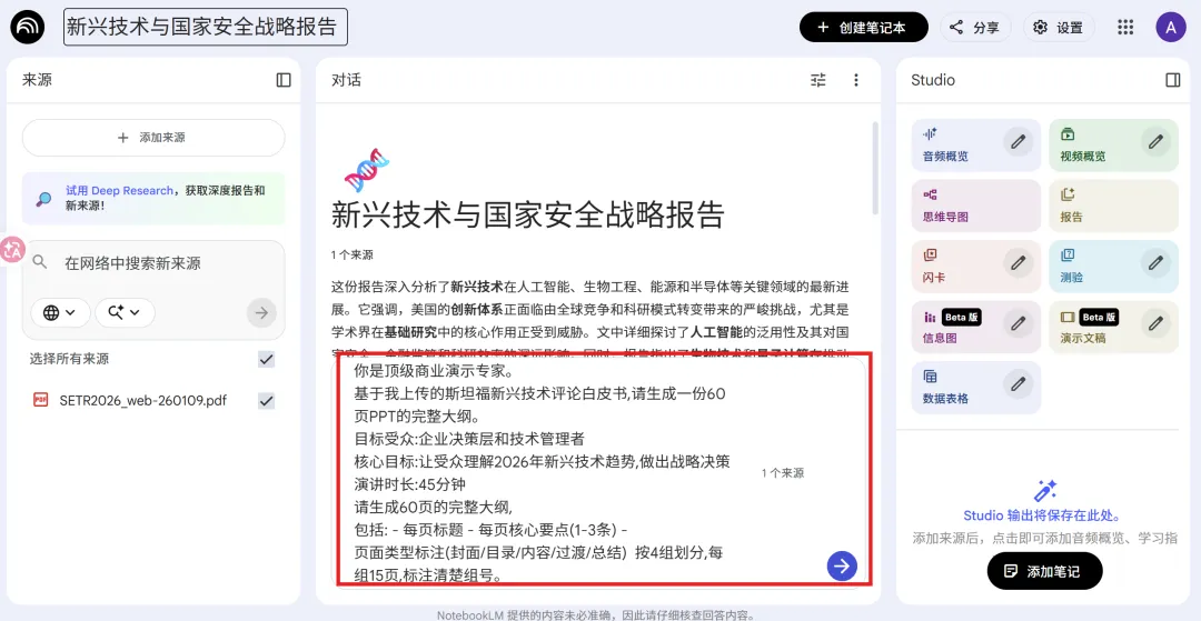 回到NotebookLM,输入: