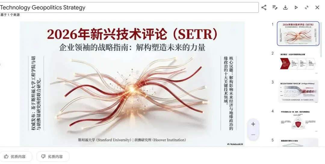 案例: 2026年1月26日发布的斯坦福新兴技术评论白皮书(228页) → 60页PPT
