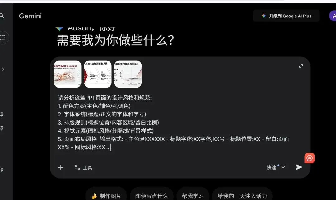 关键步骤:让AI分析第1批PPT的设计风格。