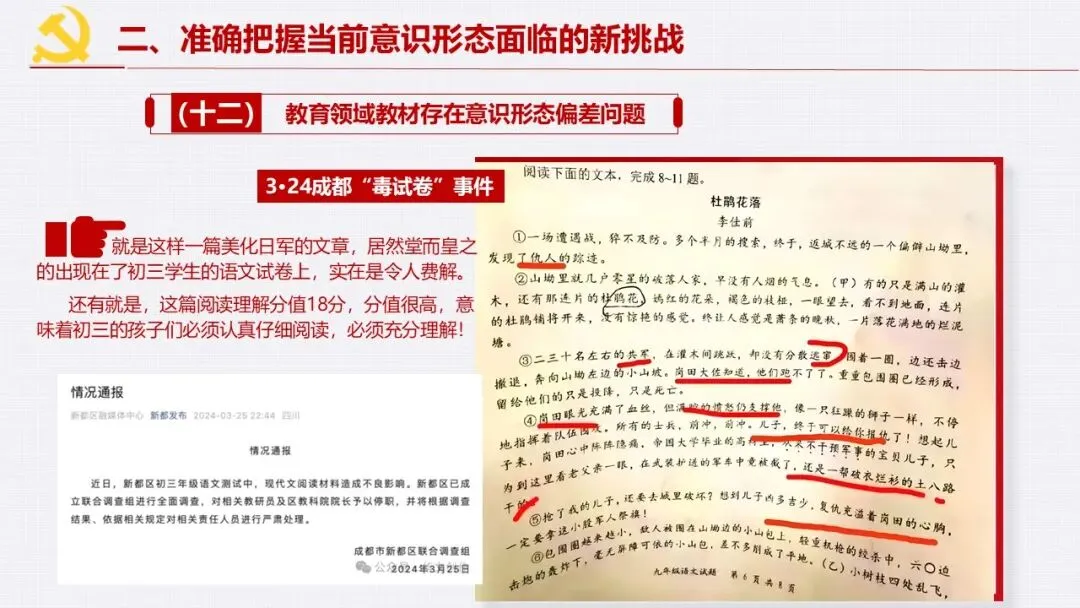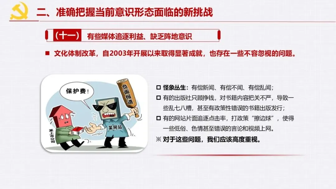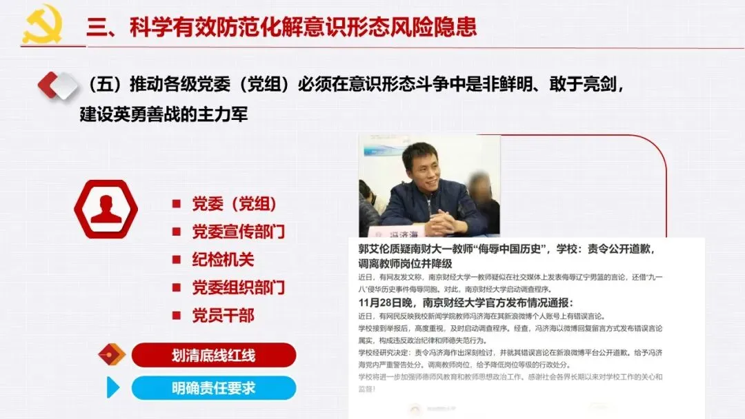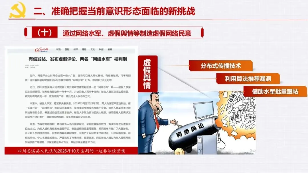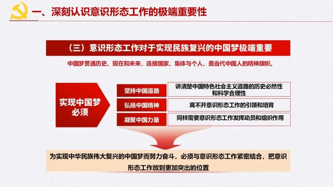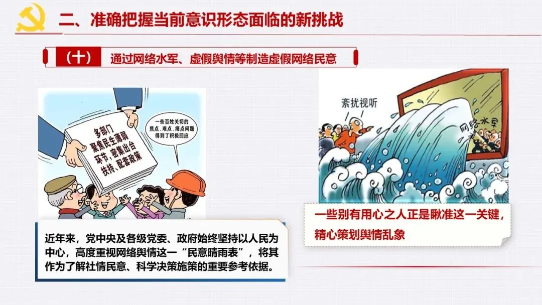 2026年专题学习辅导PPT:全面落实意识形态工作责任制,为推进中国式现代化凝心聚力讲稿侧重案例教学,大量权威官方公开报告的正反案例,加以规范严谨阐释,充分提升思政教学的生动性鲜活性。主要围绕意识形态工作的极端重要性、当前面临的新挑战以及科学有效的应对策略3层面,进行全面深入解读。